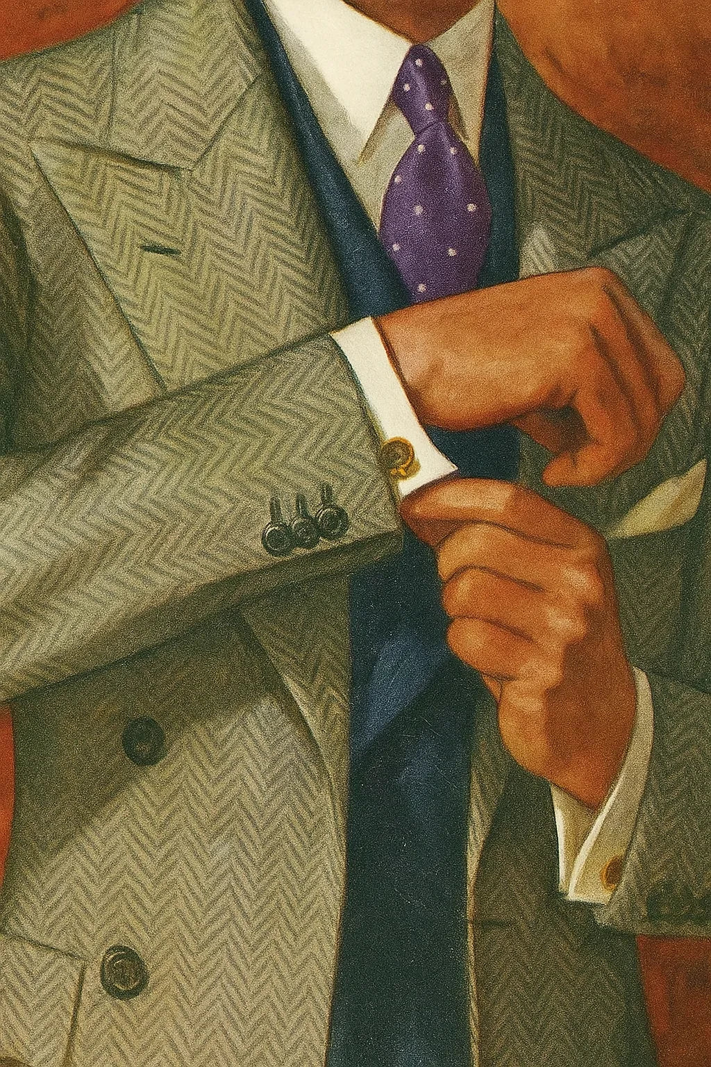 Just the quiet click of the cuff buttoning shut. The weight of the jacket settling on your shoulders. The breath you take once everything is in place.