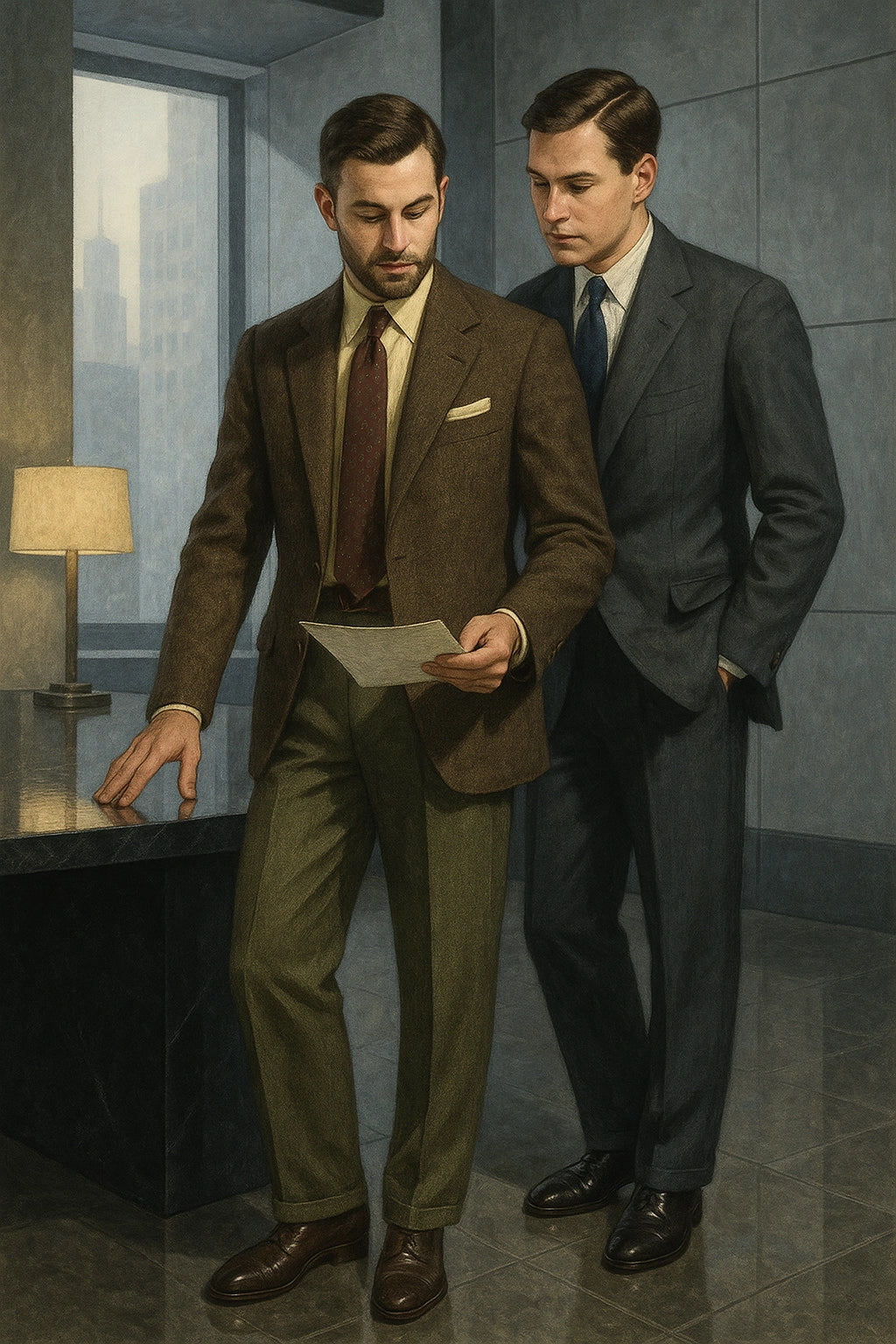 Scenes and visual moments created for Luxe Threads magazine, reflecting modern menswear through a classic illustrated lens.